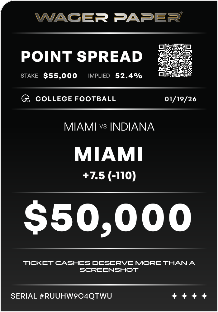 WagerPaper turns finished bets into clean, structured digital assets designed to last. Built to be relived.